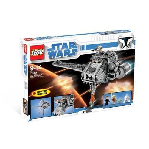 The Twilight is the temperamental but powerful starship used by Anakin Skywalker in Star Wars: The Clone Wars. This massive model features retractable landing gear that is activated by moving the wing, a flick missile, a side-mounted escape pod, moveable laser cannon turrets, and four minifigures: Anakin, Ahsoka, Rotta and R2D2.
