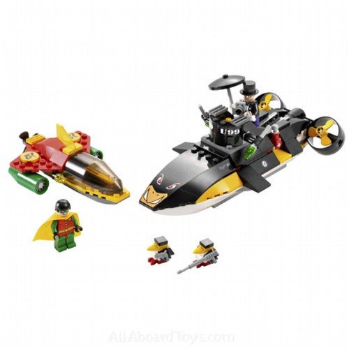 It's an underwater race to get the missing crystal! The Penguin's missile-firing sub is making waves, but Robin is on the way in his crime-fighting scuba jet. Can the Boy Wonder defeat the fowl fiend and his penguin partners-in-crime? It'll take all of Robin's speed and skill to win this battle. Includes Robin and The Penguin minifigures. 207 pieces.