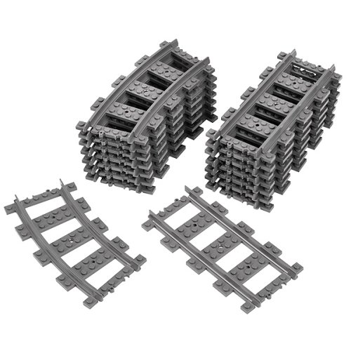 Take your train farther! Add straight and curved rails to your train track layout -- turn more corners and go even further than before! Includes 8 curved rails and 8 straight rails. Tracks do not conduct electricity and therefore are not compatible with LEGO 9v Trains.