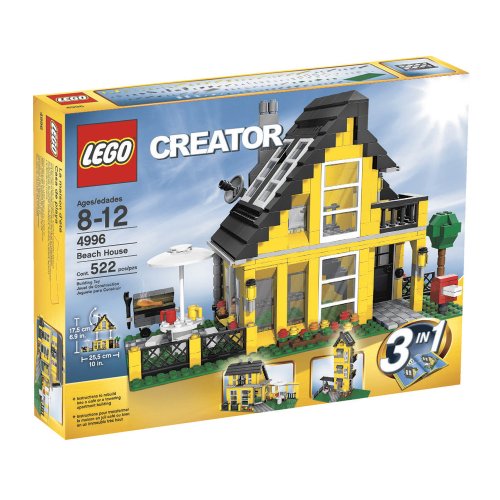 Need to get away? Relax in your very own beach house! This colorful building is packed with fun and realistic details, from the big sunlit windows to the barbecue and umbrella. Includes instructions for rebuilding into a cozy cafe or towering apartment building. The second floor lifts off to see stairs and fireplace on the first floor. There's even a balcony and a skylight that opens. Outside sits a patio with table, umbrella and chairs, and even a barbecue grill with chicken. Realistic details include a mailbox, doorbell, flowers, walkway, light fixtures, chimney, tree and lots of windows. Beach House stands over 6" high and includes a 5" x 10" baseplate. 522 pieces.