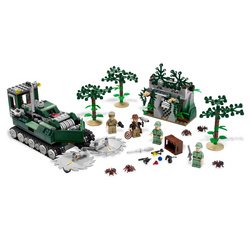 Based on the film, which pits Indiana Jones against agents of the Soviet Union in the search for a crystal skull artifact, this set provides a narrative to inspire imaginative play. In addition to the mighty Jungle Cutter with its two gigantic, spinning blades, this set includes a make-shift hideout camouflaged by vines, trees that really break apart when the cutter plows through them, and plenty of jungle spiders. The detailed Indiana Jones figure comes complete with hat, whip, and bag, while Colonel Dovchenko and two Russian Guard mini-figures provide a threatening enemy presence.