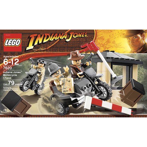 Indiana Jones and his father have found the treasure map that leads to the Holy Grail. But a guard is hot on their trail and the motorcycle chase is on! The gate is closing - Indy will have to crash right through it if he wants to escape. The gate moves up and down for added realism. Includes Indiana Jones with hat, whip and bag, Professor Henry Jones, and guard. Includes Indiana Jones' motorbike with a sidecar that detaches. 79 pieces.