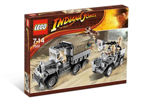 Recreate one of the greatest chase scenes in movie history with this exciting set. The villains have stolen the treasure and Indy must get it back. Riding on horseback, he chases the truck, but can he defeat the guards and win back the treasure? Includes Indiana Jones with hat, whip and bag, guards and a horse. Truck measures 6" long. 272 pieces.
