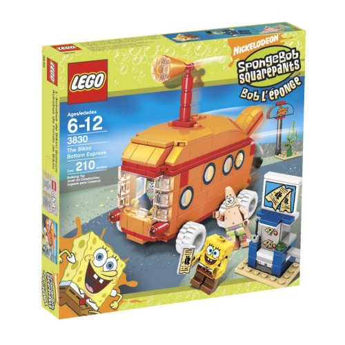 All aboard for new adventures with SpongeBob SquarePants, Patrick, and the Bikini Bottom Express. The bus keeps leaving without SpongeBob and Patrick! Can they get their tickets from the machine before it speeds away again? Lift the roof off the bus to seat SpongeBob and Patrick inside. A propeller on the back of the bus really spins. Includes SpongeBob, Patrick and all-new bus driver minifigure, plus a ticket booth and bus stop. Bus measures 6" long. 210 pieces.