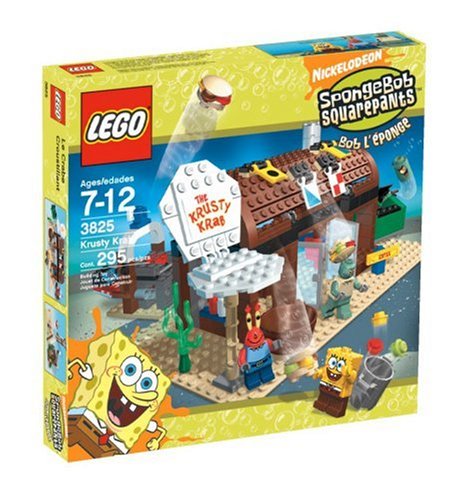 Join SpongeBob, Squidward, Mr. Krabs and Plankton in a Krabby Patty adventure at the Krusty Krab restaurant. Push down on the lever to flip the Krabby Patties and let SpongeBob know there's an order up. When it's time for closing, help SpongeBob clean up by tossing the trash in the dumpster. Then, place the money in the safe and be sure to hide the Krabby Patty secret formula so Plankton doesn't find it. It's just another day at Bikini Bottom's premier fast food restaurant. This set includes SpongeBob, Squidward, Mr. Krabs and Plankton mini-figures. Even includes Krabby Patties and more. SpongeBob comic strip is included on the box. It has 295 Pieces totally.